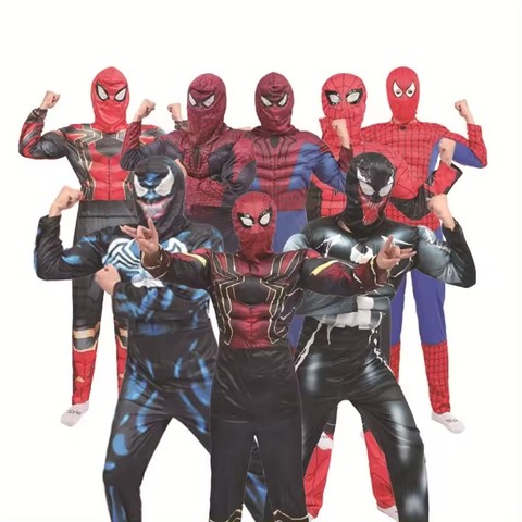Cadılar bayramı siyah ve kırmızı örümcek adam Cosplay için süper kahraman kostüm Set parti için farklı stilleri içerir üst bileşen